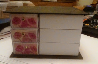 Getting there slowly. My first problem is remembering the right order that Maria told us for adding each section. In truth, it is fairly self explanatory once each drawer is folded and glued.